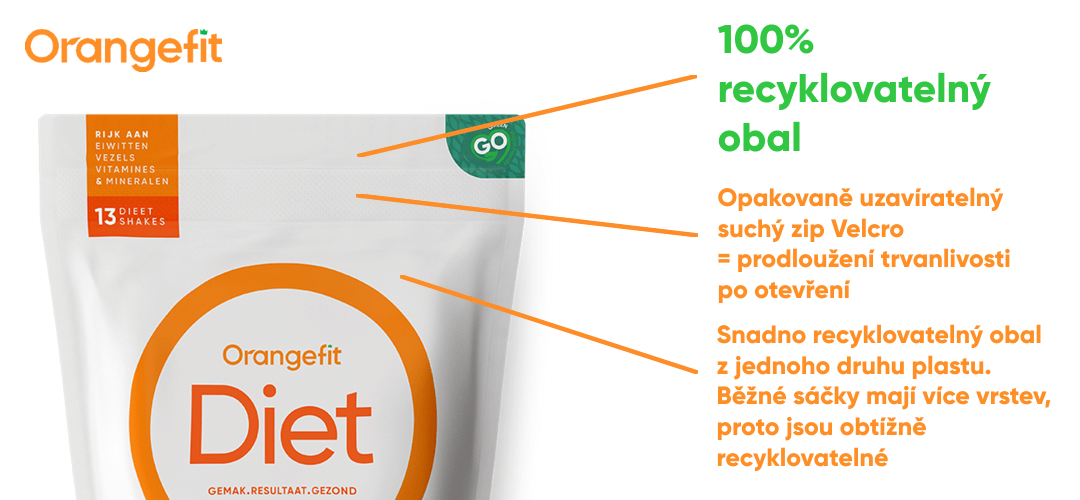 Součástí naší mise za ekologickou udržitelností je používání 100% recyklovatelných obalů. Sáčky od proteinových doplňků jsou často velmi obtížně recyklovatelné, protože je tvoří více druhů plastu, někdy dokonce i kov. Proto jsme se velice snažili a podařilo se nám vyrobit jednovrstvé obaly, které perfektně uchovávají obsah, nelámou se, a zároveň jdou velmi snadno recyklovat.
